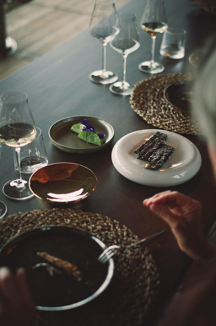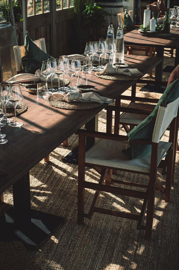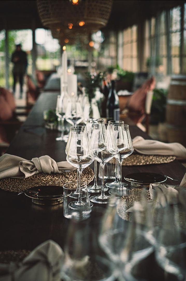 De fine dining, zorgvuldig uitgekozen wijnen in combinatie met het prachtige uitzicht van wijngaarden, een groene oase in het midden van Lochristi, zorgt voor een totaalplaatje.