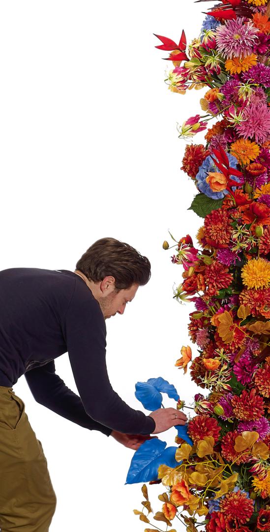 ''The bigger, the better', dat zien we in de verschillende facetten van de collectie duidelijk naar voor komen. Er wordt gebruik gemaakt van felle, vrolijke kleuren, in speelse vormen, die een harmonieus geheel vormen. Elk blad of elke bloem werd zorgvuldig volgens zijn kleurenpalet uitgekozen of letterlijk gecreëerd. Een kwetsbare collectie, daar een signature de ganse persoonlijkheid en gevoelswereld van Monsieur F bloemsgewijs weergeeft.