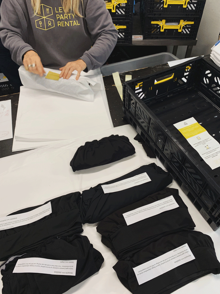 Sinds begin 2019 is Levi Party Rental gestart met een eigen wasserij. Dit houdt in dat alle tafelnappage en ander textiel zoals kussens en tapijten nu in house worden gewassen.