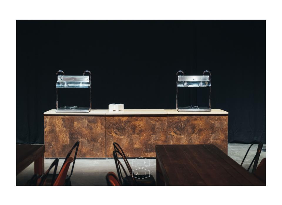 Buffet inbouw rubberwood/roest front met ijsbak inox