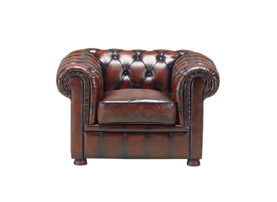 Zetel Chesterfield 1-zit bruin leder