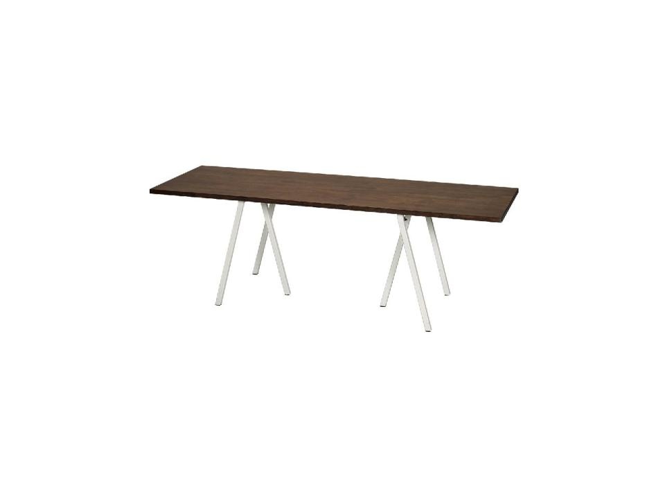 Het tafelblad heeft een walnoot kleur.