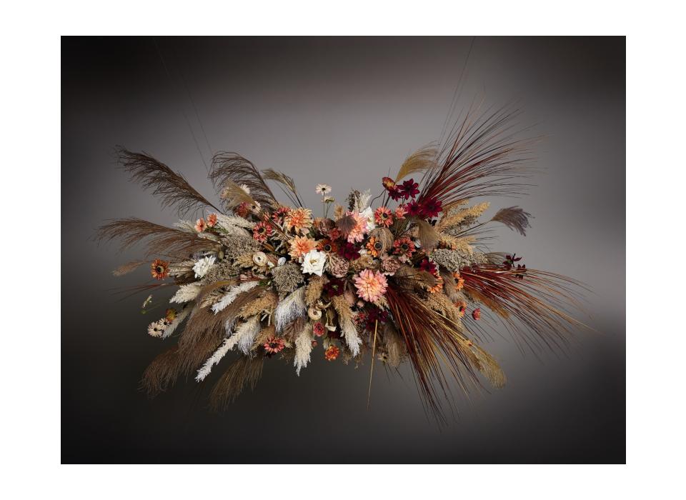 Wildflowers & Wodka maakte een collectie van bloemstukken die op ieder event meteen een heerlijk warme sfeer zullen creëren. In deze verzameling vind je geen minimalisme maar bloemstukken die impact maken. Alle stuks zijn rijkelijk ontworpen met talrijke materialen die de kenmerkende luxe maar edgy stijl uitdragen. Pluimachtige texturen en grassen vormen de basis van ieder bloemstuk, samen met weelderige grote bloemen in warme tinten zoals koraal, crème en bordeaux.