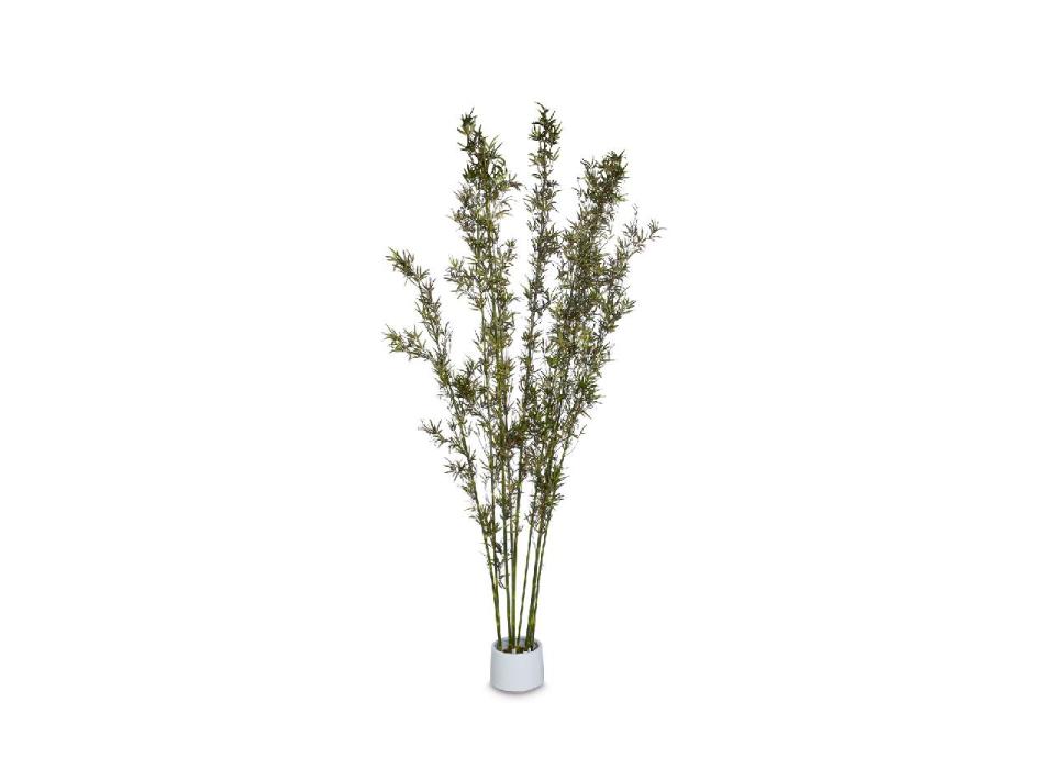 Grote artificiële bamboeplant. Zit standaard in witte pot (D40 H28cm). Indien andere pot gewenst wordt de witte pot in een grotere pot geplaatst.