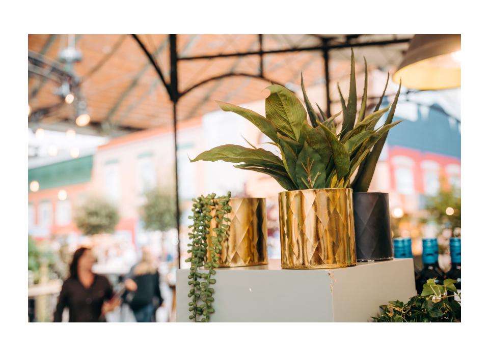 Set van 6 kleine groene kamerplanten, 20-50cm, in zwarte of goudkleurige pot.